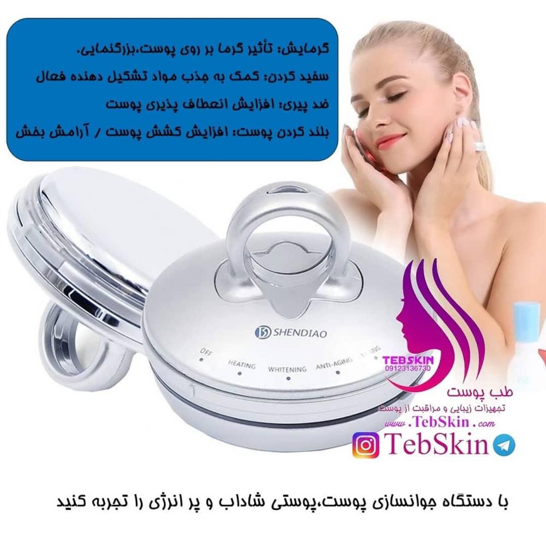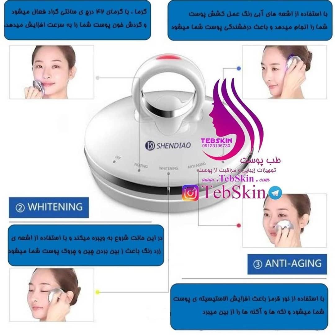 دستگاه جوانسازی پوست Shendiao یکی از جدیدترین و بروزترین دستگاه های خوش دست و قابل حمل ، مخصوص از بین بردن عیب و ایرادهای پوست صورت و جوانسازی پوست است که باعث رفع چین و چروک ها و از بین بردن آکنه ها روی پوست شده و پوست صورت شما را برای تولید کلاژن تحریک می کند . با کمک این دستگاه می توانید به راحتی تیرگی ها و کثیفی ها و سیاهی های اطراف چشم و پوست صورت را از بین برده و طراوت و شادابی و درخشندگی را به پوست خود باز گردانید . این دستگاه کمک به رفع جوش های سرسیاه گرده و نورهای LED این دستگاه باعث از بین بردن لکه های پوستی و رنگدانه های پوستی می شود . دستگاه جوانسازی پوست Shendiao همانند تمام دستگاه های جوانسازی پوست پوست صورت را لیفت کرده و مانع از شل شدن و افتادگی پوست صورت می شود .