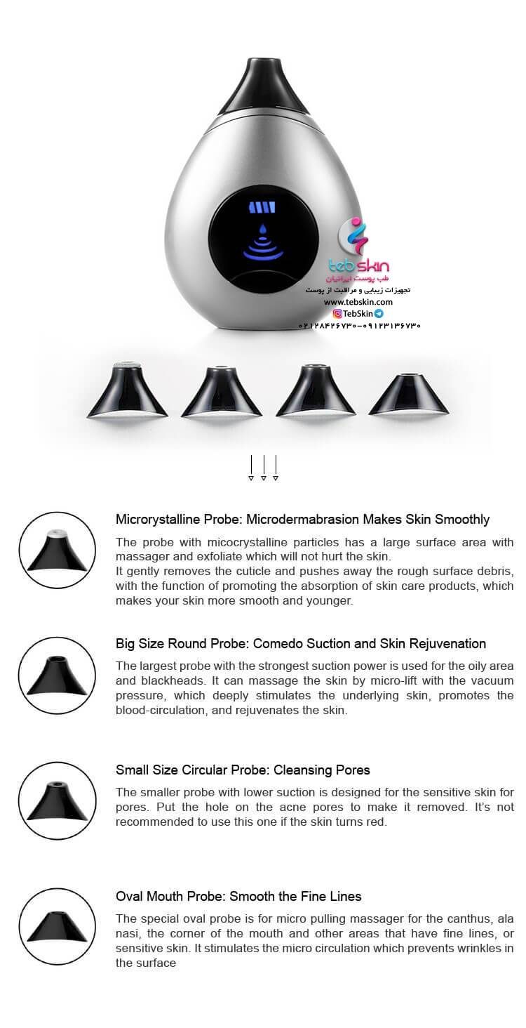 این پروپ برای نواحی خاصی جهت ماساژ و پاکسازی پوست از جوش های سرسیاه در تواخی اطراف دهان و مناطق دیگر باعث از بین رفتن خطوط بسیار ریز نیز خواهد شد چرا که مکش دستگاه باعث جریان گردش خون در پوست می شود و از بروز چین و چروک ها نیز جلوگیری می کند .